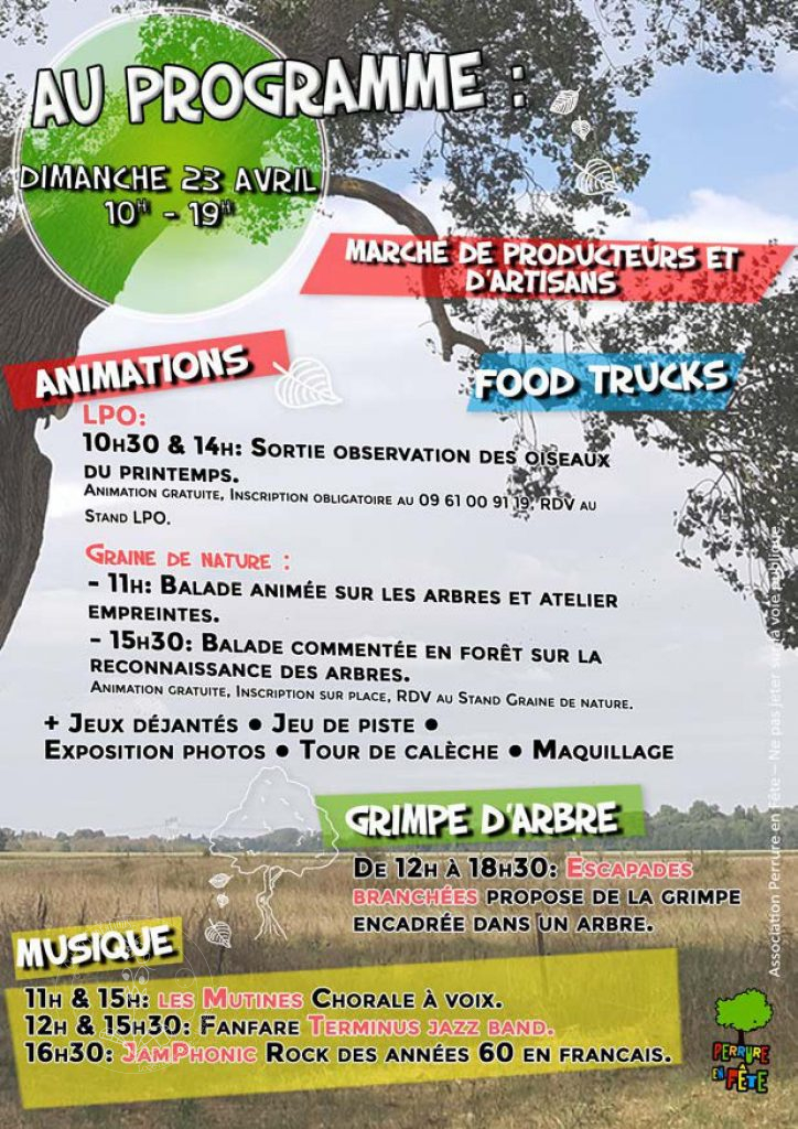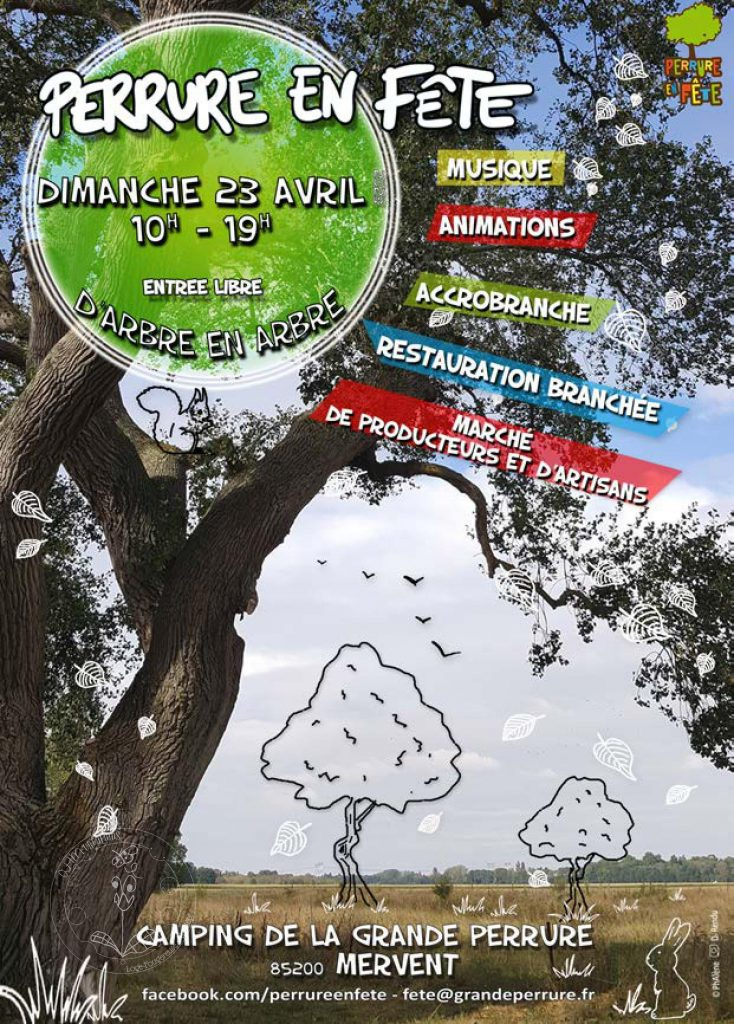 Perrure en Fête | Camping de la Grande Perrure, Mervent, 85200 | Dimanche 23 Avril 2023 | 10h a 19h | Marche de Producteurs et d’Artisans – Musique – Animations – Accrobranche – Restauration Branchée